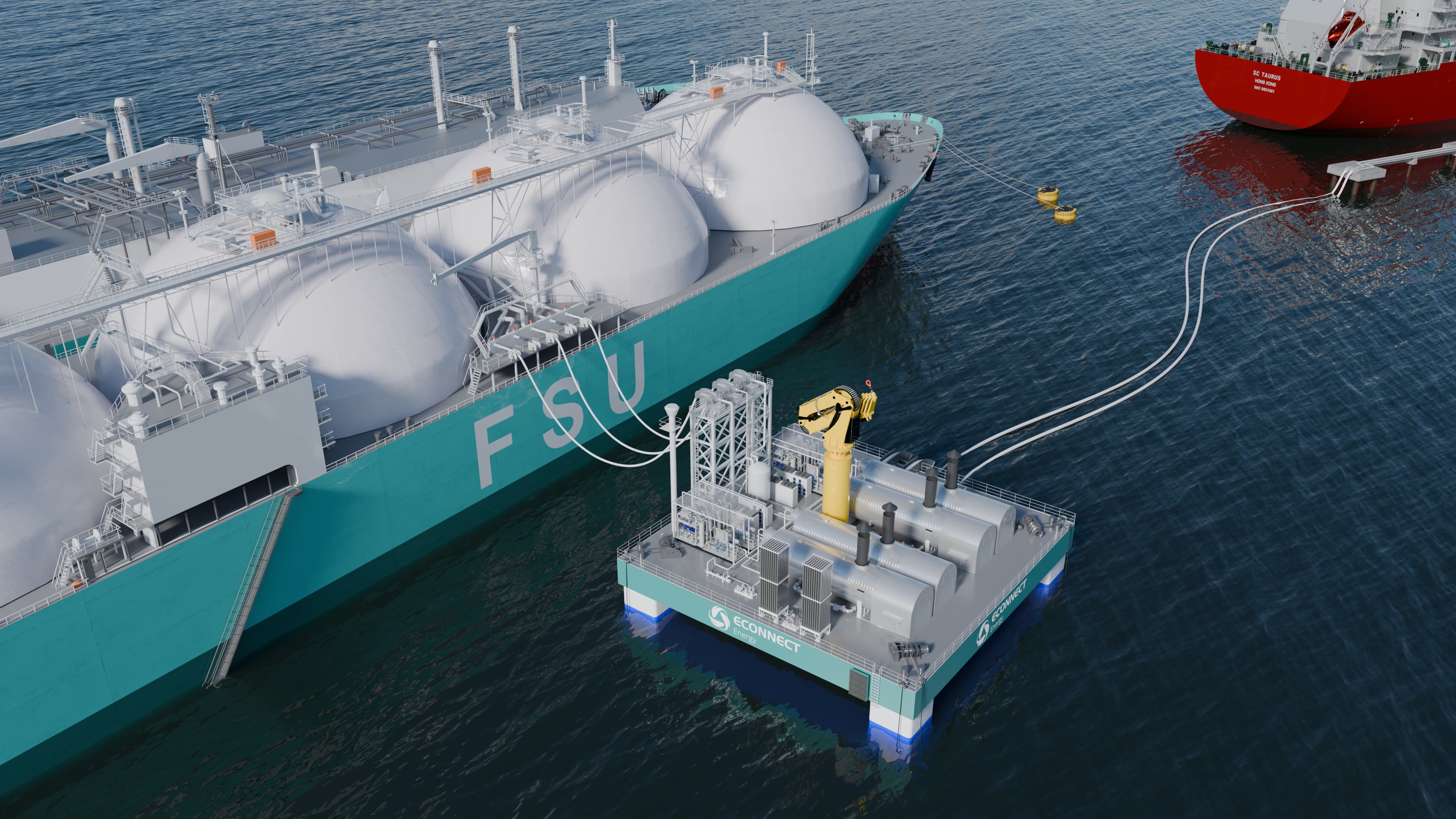 One such solution is the ECOnnect IQuay R-Class, a floating regasification platform developed as part of the IQuay Regas Terminal. Instead of relying on a single large regas vessel or extensive onshore facilities, the R-Class enables regasification to be carried out on a dedicated offshore platform, combined with floating storage and jettyless gas delivery to shore. The solution is designed for projects where conventional infrastructure is either oversized, too complex, or poorly matched to local conditions.